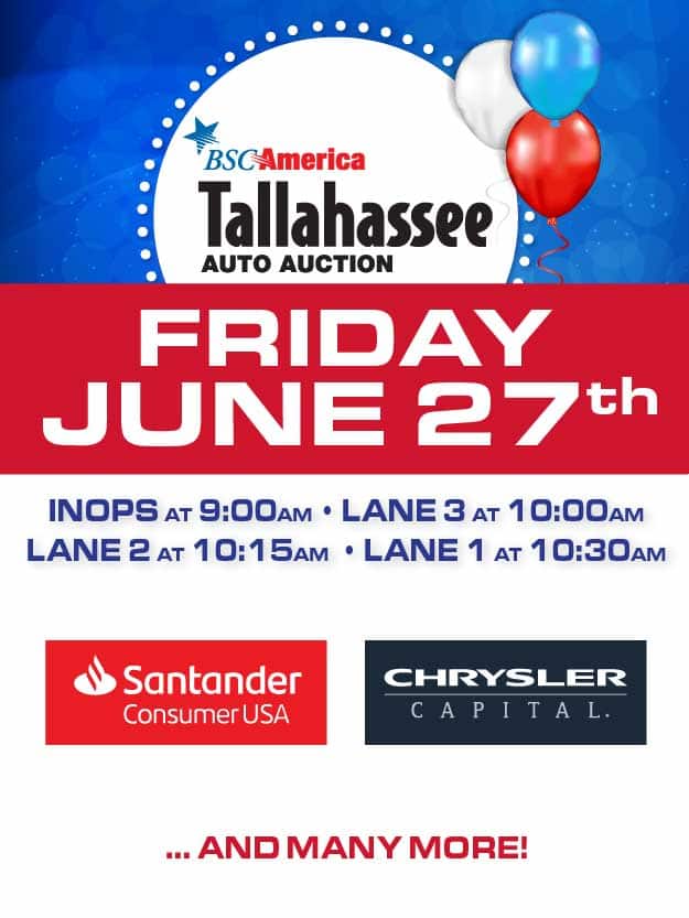 BSCAmerica has been offering superior auto auctions for 75 years and has owned and operated the Tallahassee Auto Auction since 1995. We are located on the main thoroughfare of Capital Circle in Tallahassee, FL, just 4 miles east of Tallahassee Regional Airport, and we serve buyers and sellers across the panhandle of Florida including Alabama, Georgia, and South Carolina.